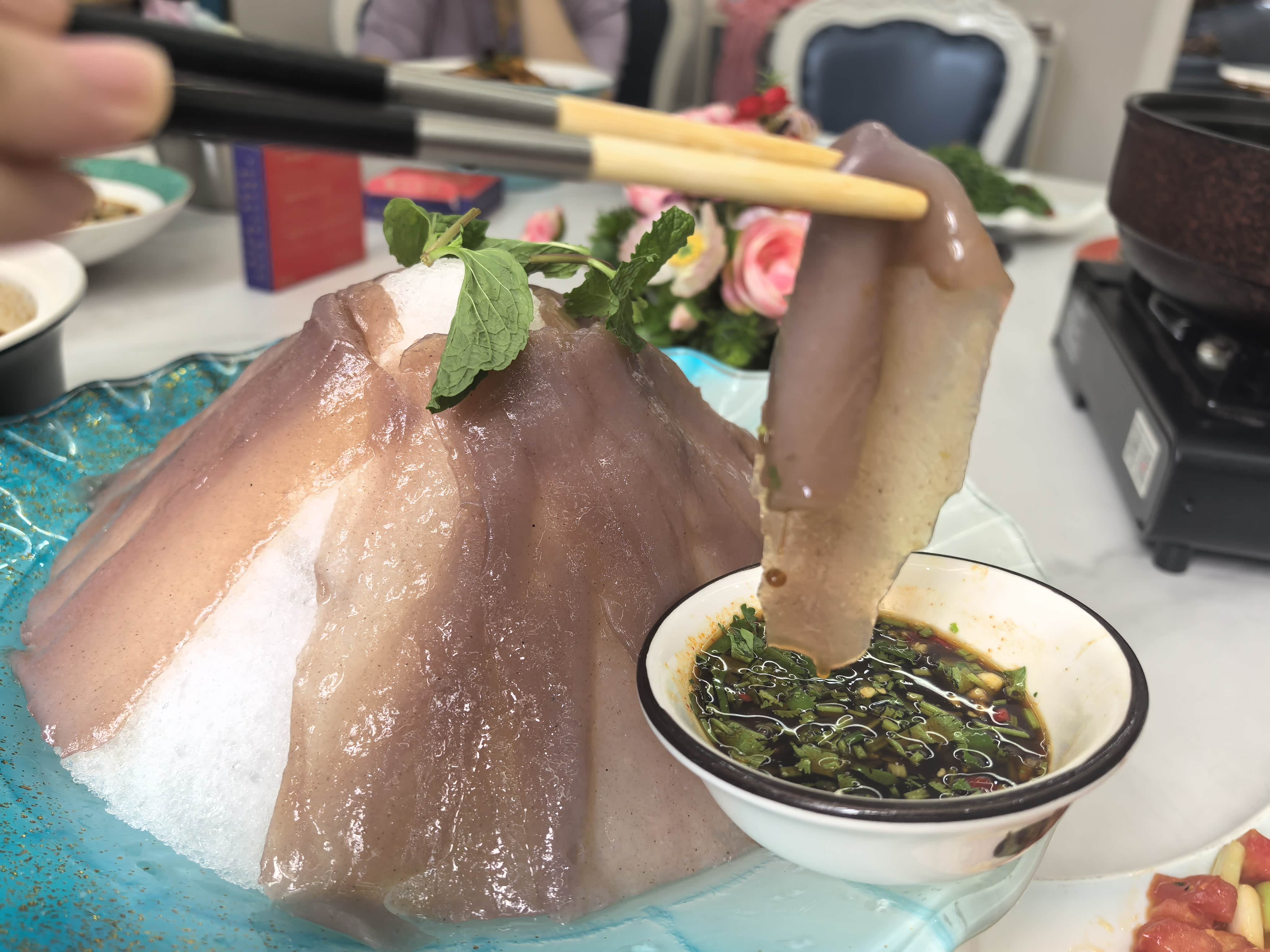 3)凉拌魔芋,生魔芋,切的很薄,蘸着料味道特别鲜美,值得一尝。