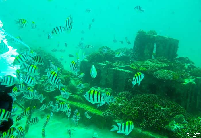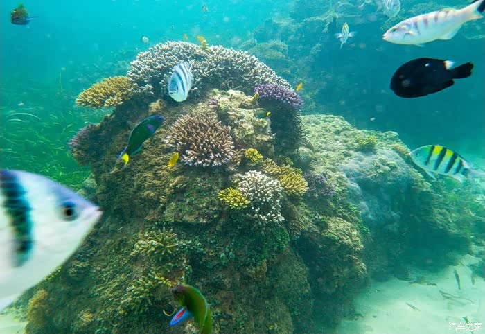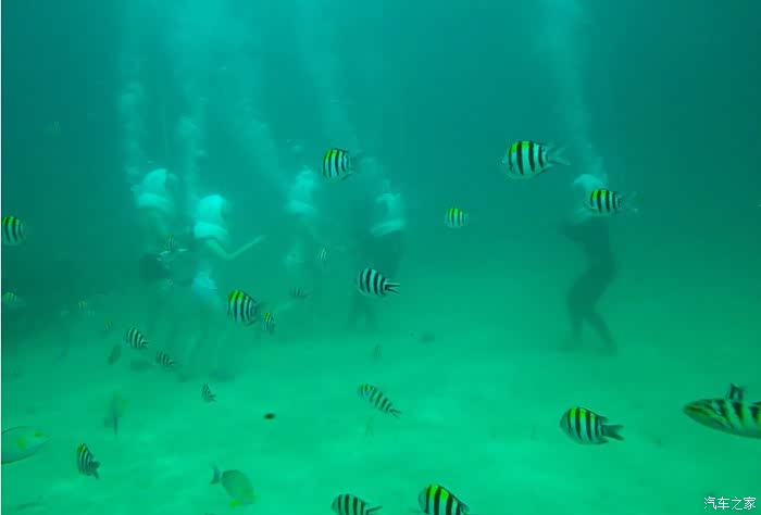 经过一个小时,我们到达了蓝梦岛,蓝梦岛的海水清澈见底。