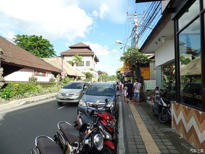 巴厘岛街景,道路很窄,但很干净,驾驶人员不急躁,在岛上几天几乎就没有听见喇叭声。