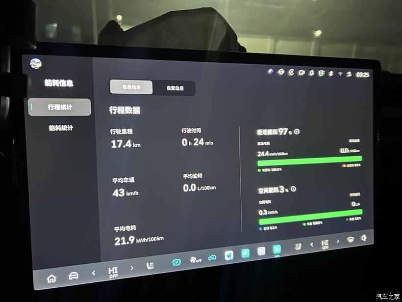 能耗表现也有惊喜。最近气温降到-7℃,在纯电优先模式下,我跑了17.4公里的通勤路程,平均电耗21.9kWh/100km。对比升级前同温度、同路况下的表现,电耗降低了约1.2kWh/100km,续航达成率有所提升。