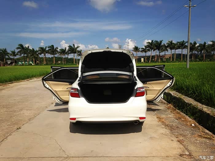 2. 空间表现很好,我身高173cm,驾驶座调整至恰当位置的前提下,坐在后排的腿部空间达到两拳半至三拳,可以说是绰绰有余,后排中间几乎平整,驾驶座右侧的储物格空间超大,其他储物空间基本够用,后排座椅无法放倒,对于后备箱的扩展空间来说是一大遗憾。当初买凯美瑞,空间也是我考虑的一方面,毕竟是B级车,无论是左右间距还是后排腿部空间在同级车中表现还是属于中上水平的,最值得一提的是后排中间的隆起几乎没有,对于偶尔坐在后排中间的乘客不会像坐在其他车上那样遭罪。(因为该网友跟我身高一样- -.所以我也不作修改了.)