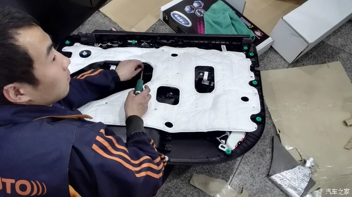 在这里我需要强调一下,我做隔音是为了更好的提升音效。不可否认,原车的隔音效果已经非常不错,并且是原车主打的卖点之一。我在做隔音的时候发现,原车的前机盖以及四门内部,甚至是副驾驶前面的手套箱背面都已经有了隔音棉,我想,也是因此,原车获得了不错的隔音效果。但是,付出的代价就是把车拆了个稀烂...你敢吗?