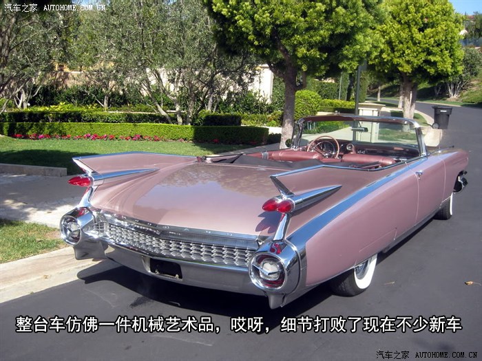 下面这款经典的粉色1959年凯迪拉克Eldorado算是当年的顶配车型,所有选装件都配齐了,车主99年购买了此车,2003年修复完成,花费了大量心血和银子。。。翻新的相当NB。。。几乎和出厂时一样!其实已经是行驶了99275英里的老车了。除了那几款经典的美式肌肉车外,这是我最爱最爱的一部美国车了。。。难以形容的感觉!