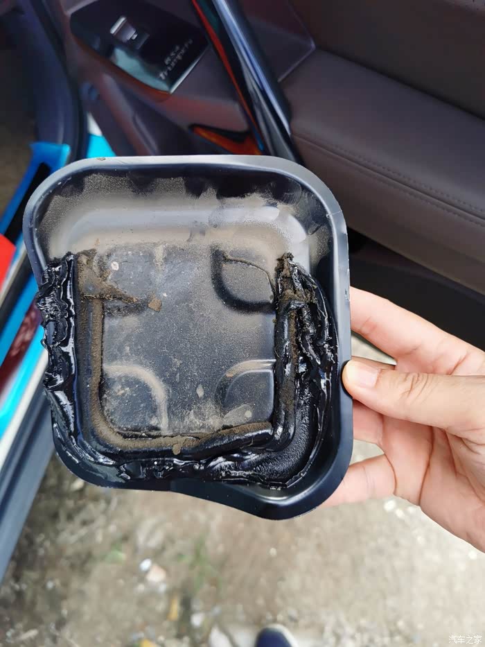 你人没事吧,这个应该是高压断电开关的防护罩,这个是被高温烤化了吗 看正面是变形了啊,受力了,这个一般都是在 后座椅下面
