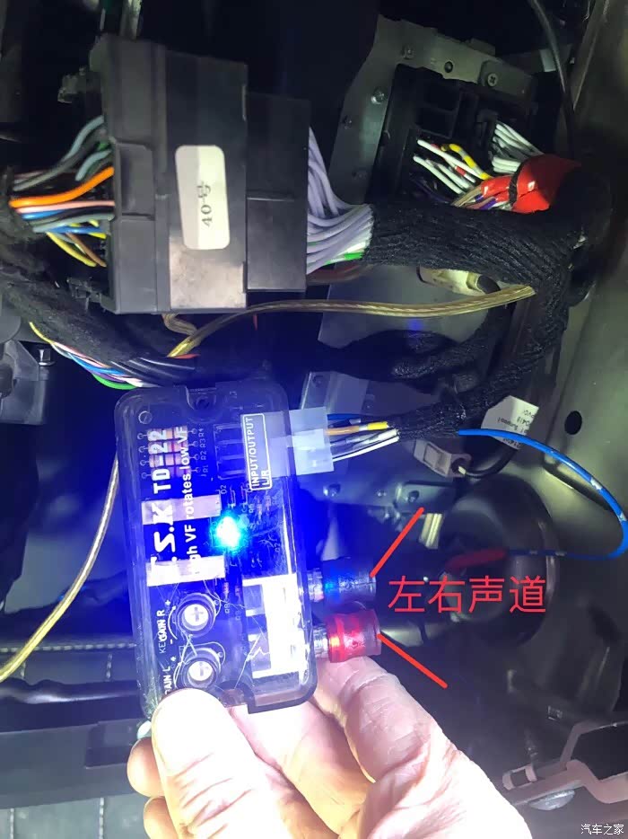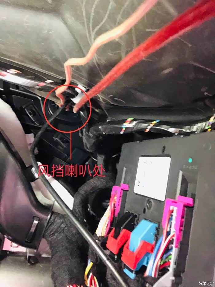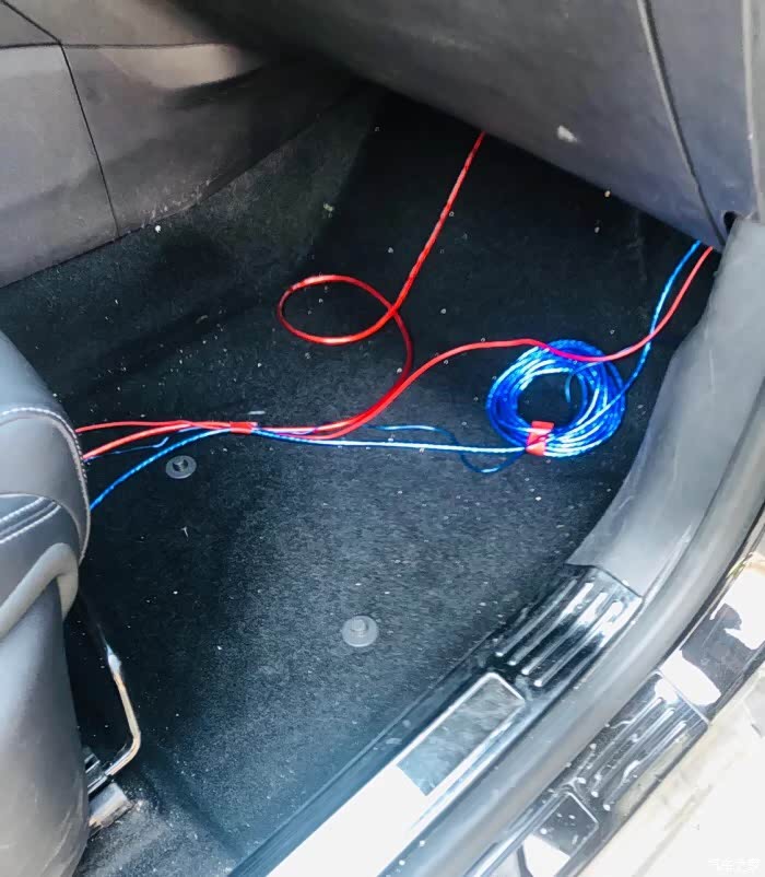 主驾高音从机台下方走线,在穿过副驾驶位置(主机在副驾手套箱后面)