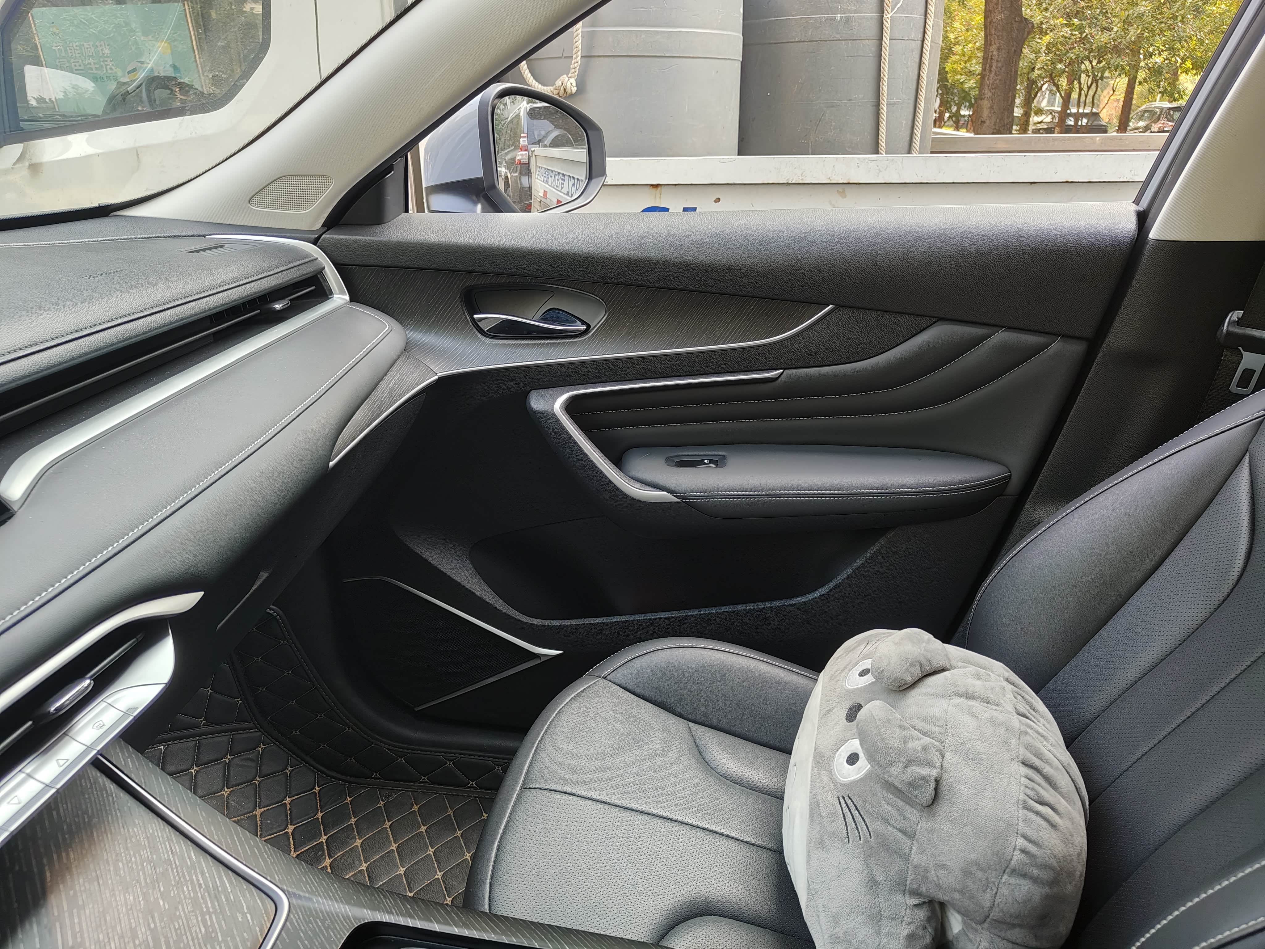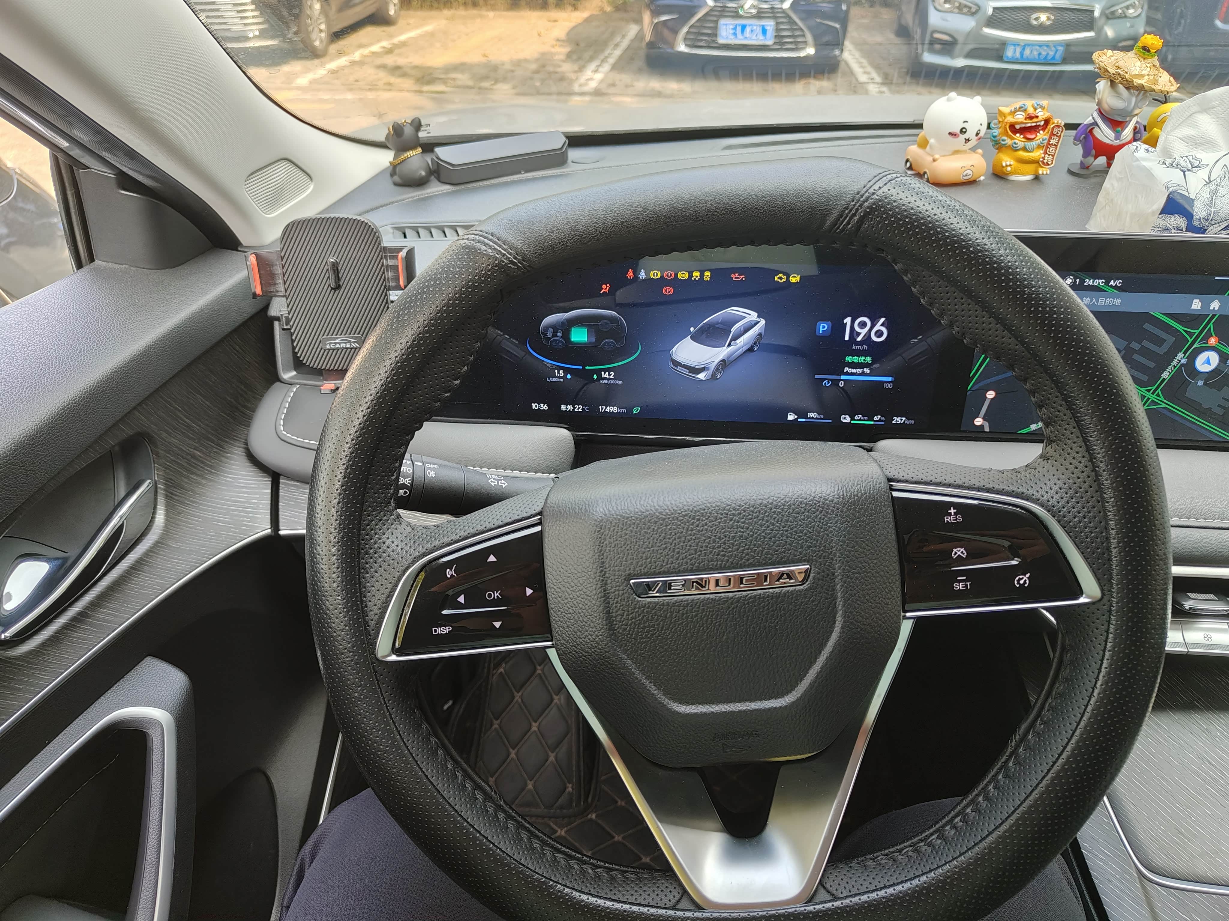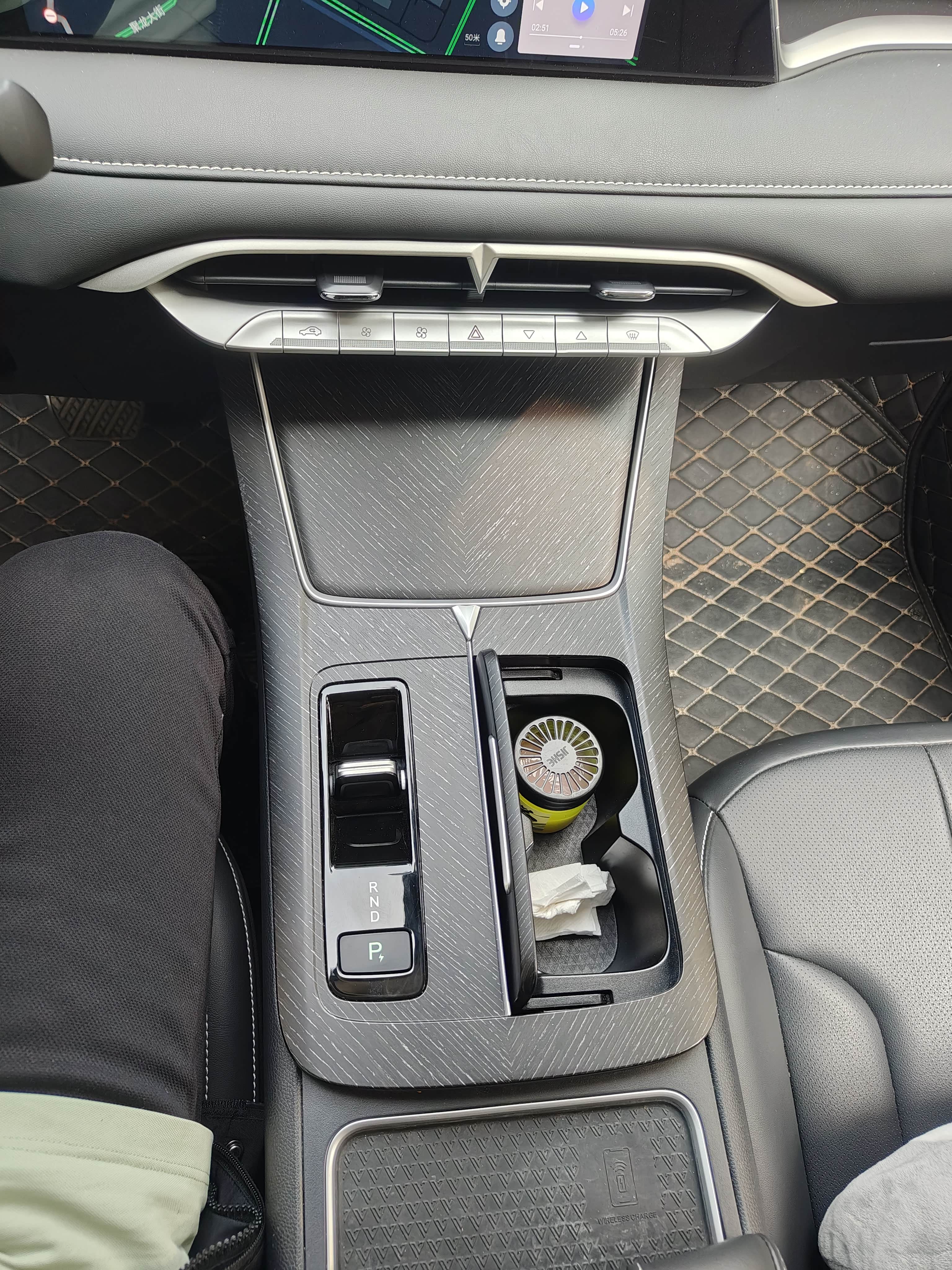 整体的内饰比较简约,没有那么多花里胡哨的功能,音响前后门都有,然后后排也有空调出风口,家用完全ok,而且性能上面百公里加速8秒,完全够用,方向盘是传统的圆盘,好开,顺手,整体的比较不足的地方可能就是好像跟油车大v用的同一套底盘然后增加的电池,所以整车比较重,开比较起伏不平的道路底盘就会感觉比较阮,跟开船似的。