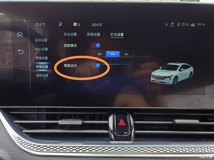 自适应远近光又叫智能远光控制系统,该系统可以根据车辆前方光线的强弱来自动切换远光近光。自适应远近光开启方法:1.中控屏安全设置页面灯光设置打开智能远光系统;2.灯光控制拨杆置于AUTO位置且自动开启近光灯状态;3.将灯光控制拨杆向远离自身方向推动一次则开启自适应远近光,仪表盘最上方中间位置出现智能远光系统开启标志。