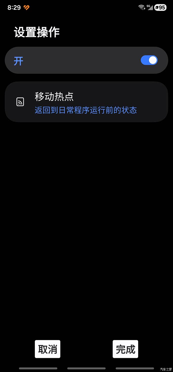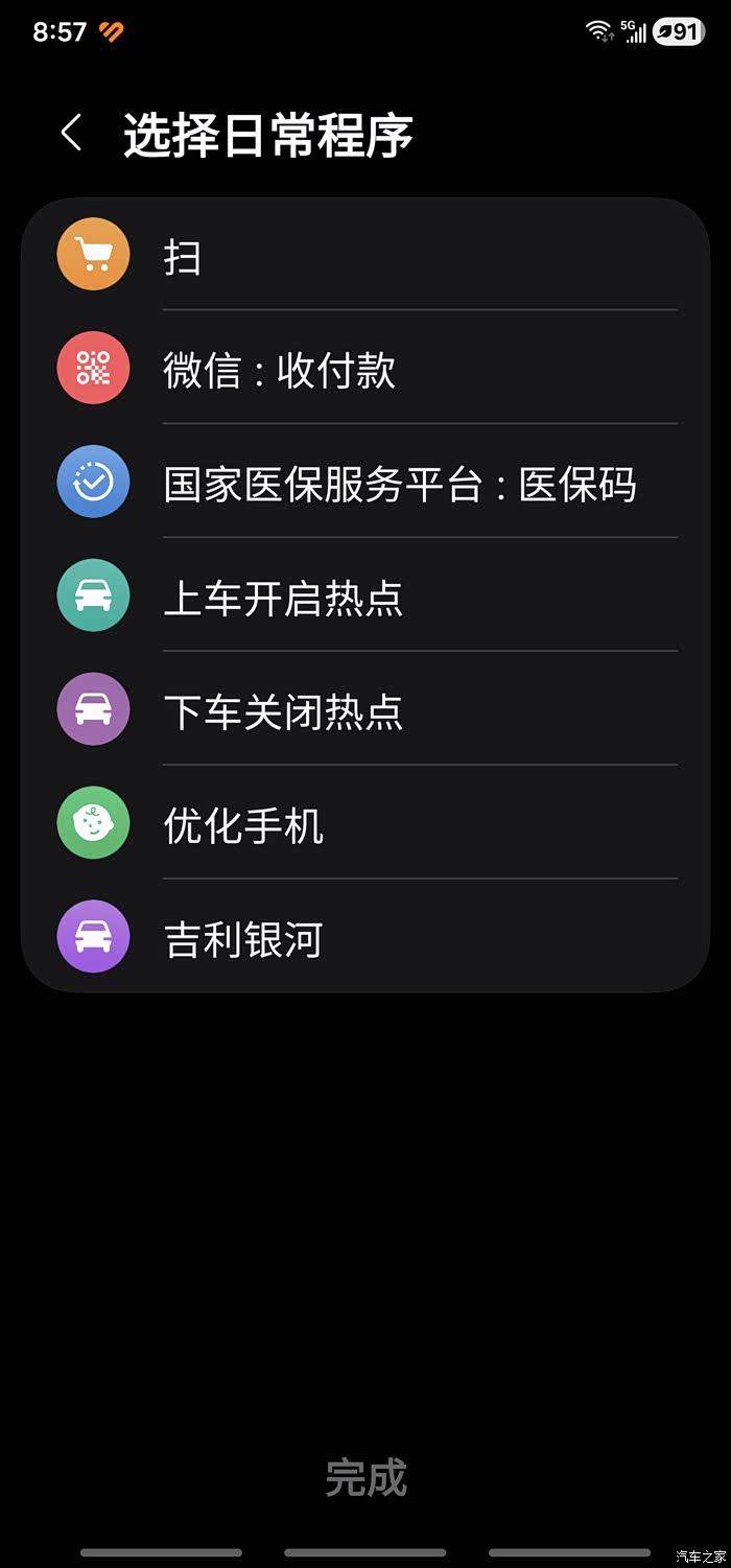 这里我说一下,我设置的是上车自动连接蓝牙和热点,下车设置的是自动断开蓝牙和热点。如果车友也需要下车结束相关连接,可先行完成上车操作保存后再次进入该程序选择驾驶已结束按照同样方法操作保存即可。