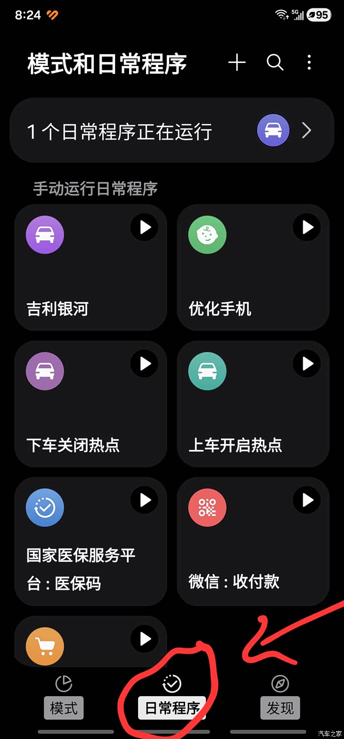 再次选择模式和日常程序。
