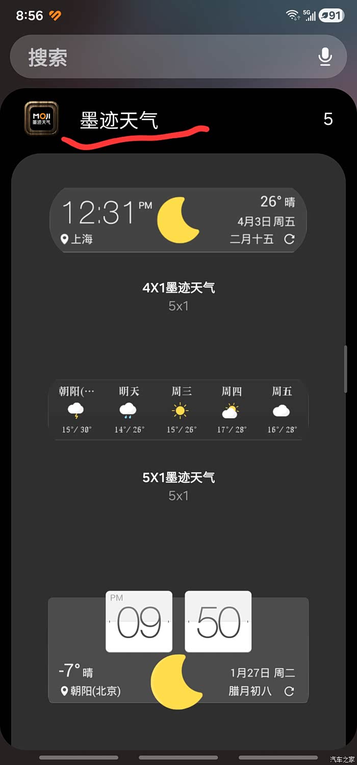 完成上述操作后,可根据自行喜好再次长按星愿图标后再次进行叠加,我选择了天气。