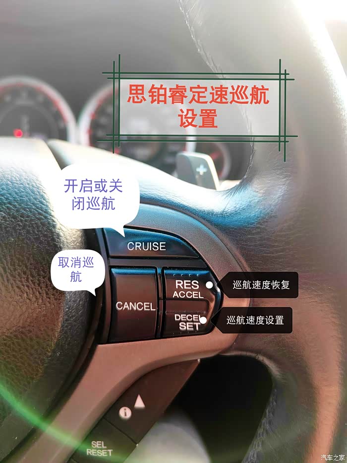 巡航速度恢复是一种记忆功能,在巡航中临时刹车和加油后,一般的车是要车主主动加油或减速至需要定航的速度再固定,按此键可一键恢复(自动加油或减速)至之前设置好的速度。