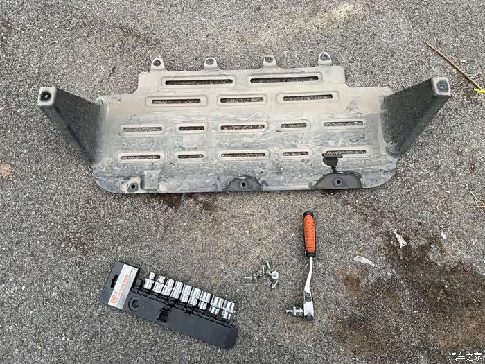 首先仍然是拆下地盘护板,一共9个螺丝,棘轮扳手再次安利,成功男人必备。手握扳手,啥子都有。