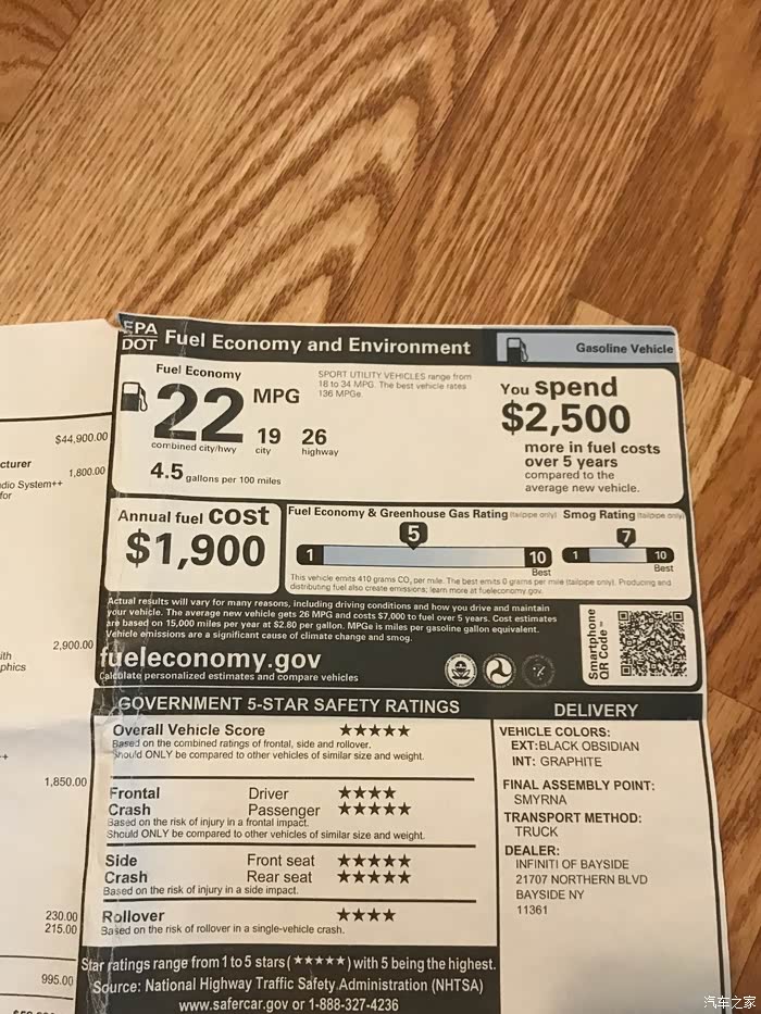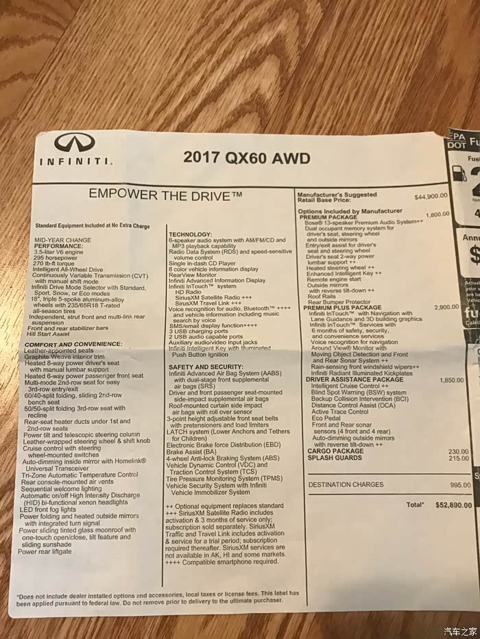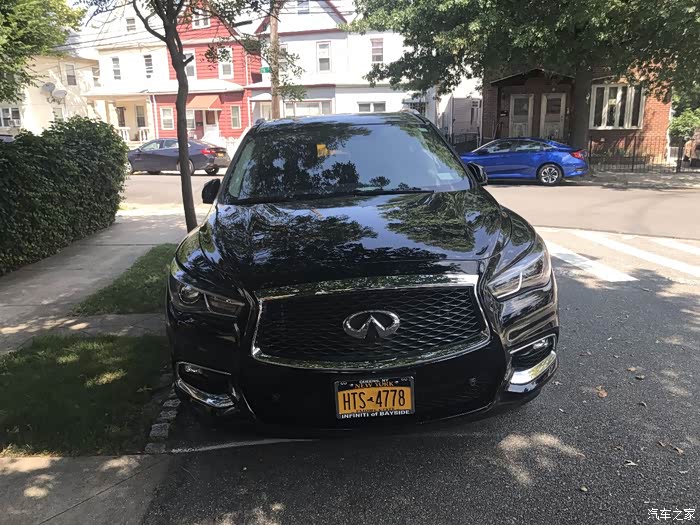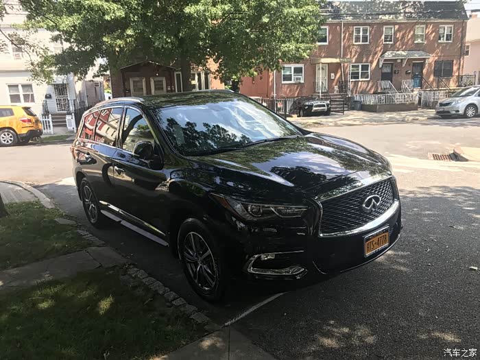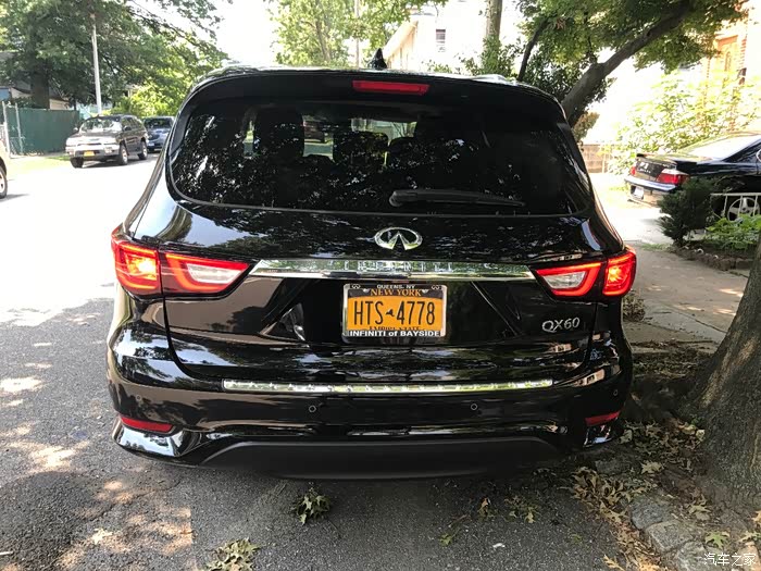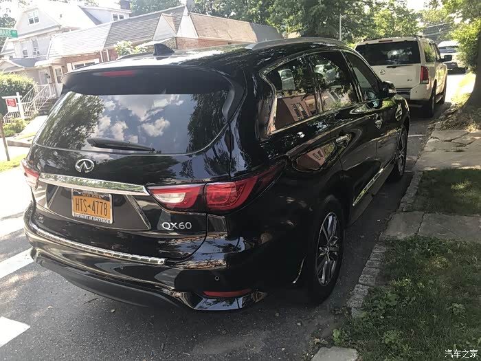 因为工作和家里的原因 需要一部7座车来替换家里的RX350 之前朋友的QX60从14款到16款都有坐过 相对来说了解一些 加上从16款开始比较大的改款 对外观还是比较满意的 之前美国独立日搞活动没赶上优惠 7月31号 4S打电话说月底有销量任务 就去谈了谈 基本上优惠了7000刀价格还是可以接受的 即当天提车 对比一下RX350 首先60的有点就是大空间有七个座 但是操控和内饰RX350完爆QX60 当然配置和性价比来说QX60还是非常给力的 开始上图 手机拍照望大家见谅