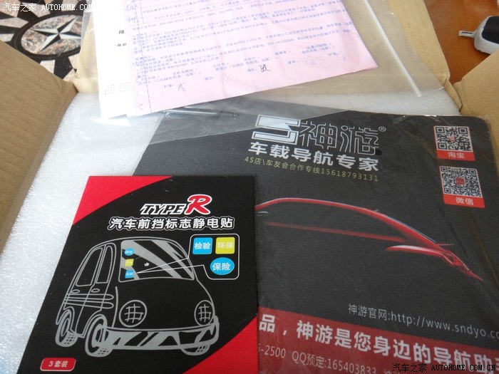 盒子里的东西,很齐全,如果有时间建议大家自己去安装,而我对自己没有自信。。。只好请了神游导航在我们本地的安装合作店里的师傅来安装的,亲自上门哦!哈哈