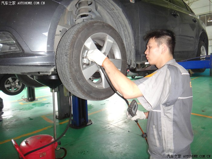 师傅很认真的检查每一颗轮胎固定螺母。。。