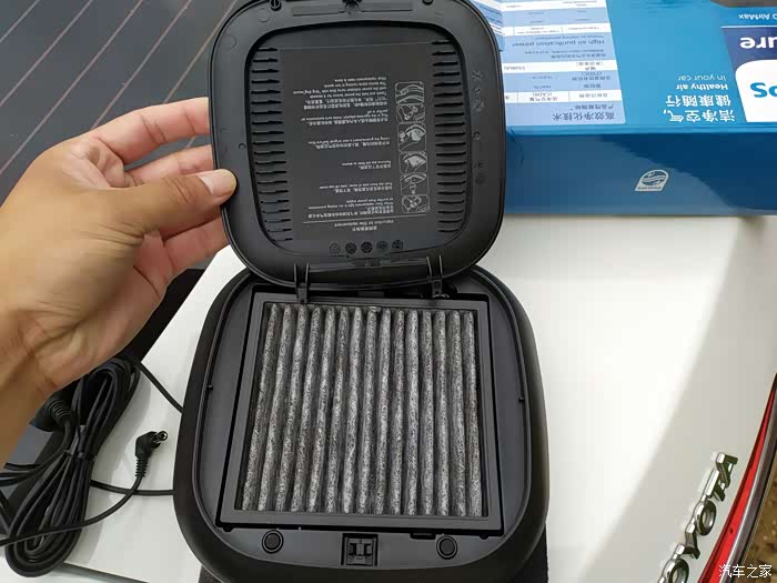 车载空气净化器本身体积小,占用空间有限,小体格却有大作为,可以迅速净化你的车内空气,清灰尘除异味。这款车载空气净化器,结构简单,操作安装方便,即便是新手司机同样可以do it yourself……打开净化器上盖,没错,其实就是一个mini版的空调滤芯,这个滤芯跟车上的空调滤芯类似,一般也需要一年更换一次。取下滤芯,下面又是一个小小的换气扇。结构就是这么简单,却又大作为。净化器携带的简单配件,包括一条绑紧带,卡紧绑带的塑料壳,还有一条点烟器接口的电源线。