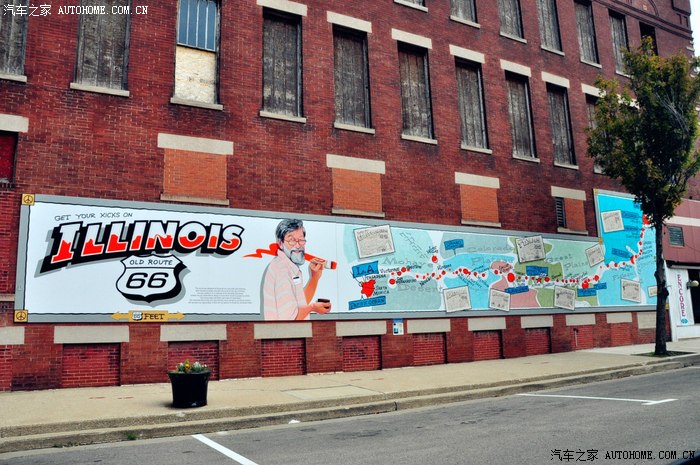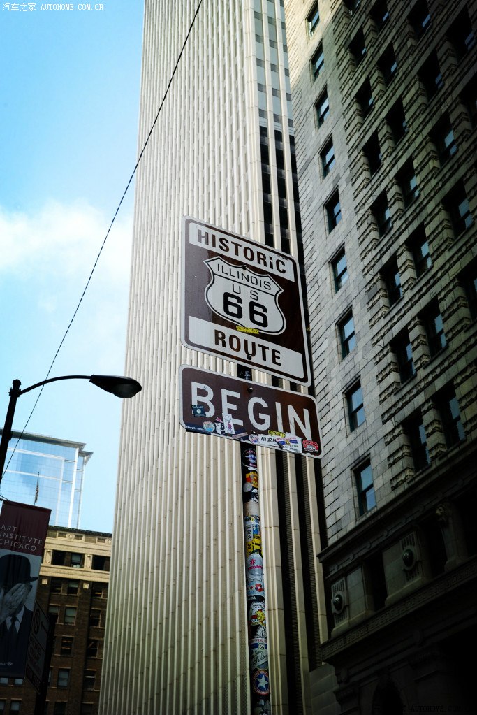 开往芝加哥市区,寻找66号公路起点的那块地标性的路牌