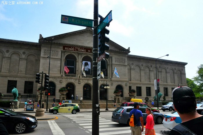 密歇根大道和亚当斯街的交界处,远远看到了66号公路起点的路牌。
