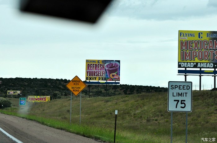 警车不多,但总在不经意间出现,好在我们都是拒绝超速的中国好司机。这段路限速55英里。