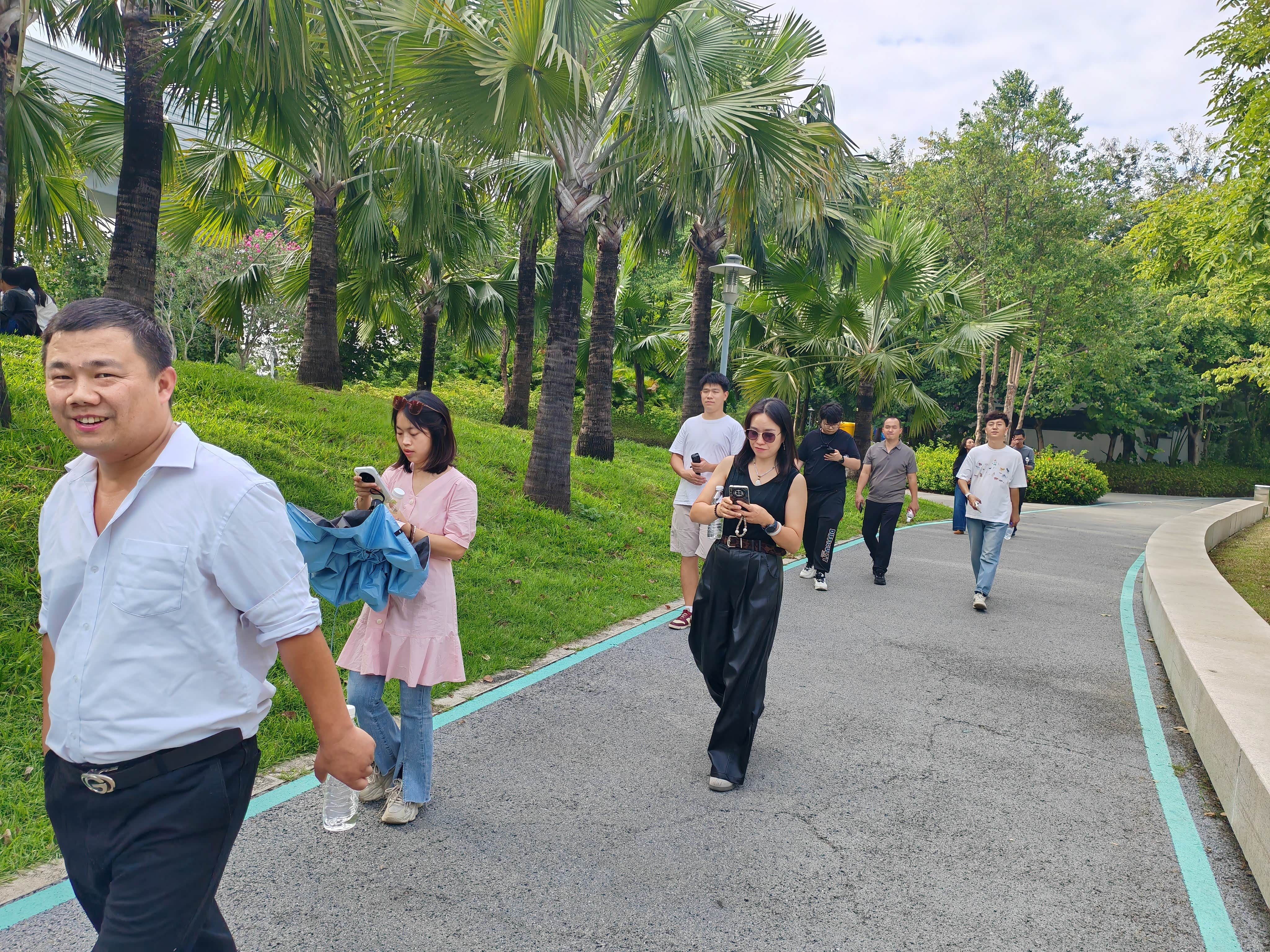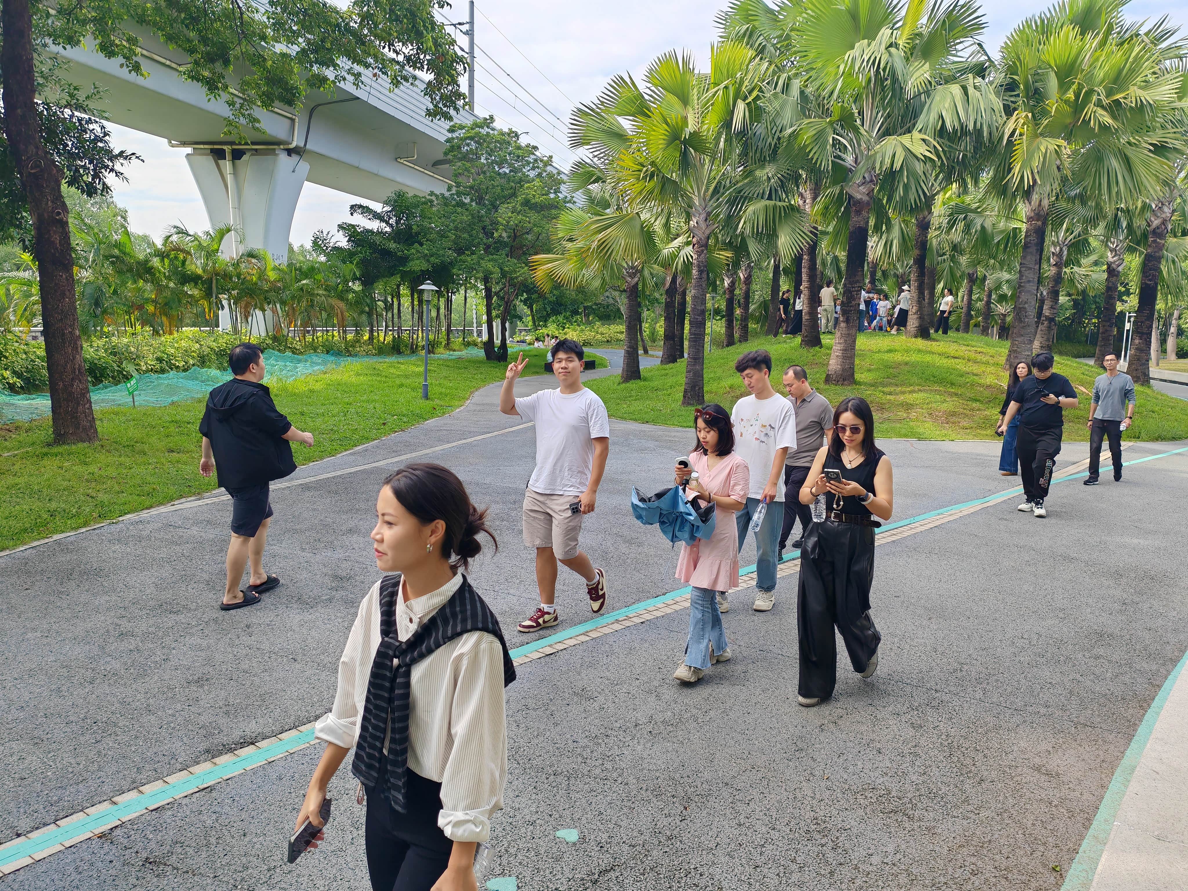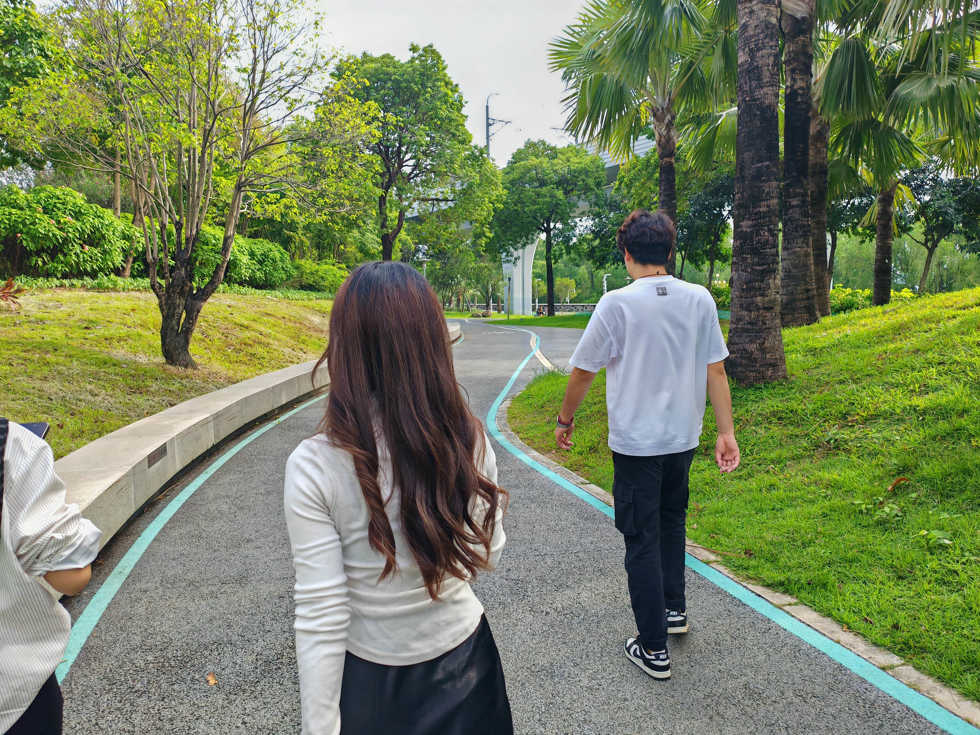 徒步环节中,车友们解锁了“海陆空交通同框”的独特景观。头顶每两分钟划过的民航客机、身旁呼啸而过的深圳11号线地铁、远处海面上蜿蜒的沿江高速桥墩,与偶尔驶过的轮船共同谱写出一曲现代交通的立体乐章。在固戍码头旧址,斑驳的牌坊与远处的轮船形成时空对话,车友们在此留下创意合影,将历史印记与现代科技定格在同一画面。