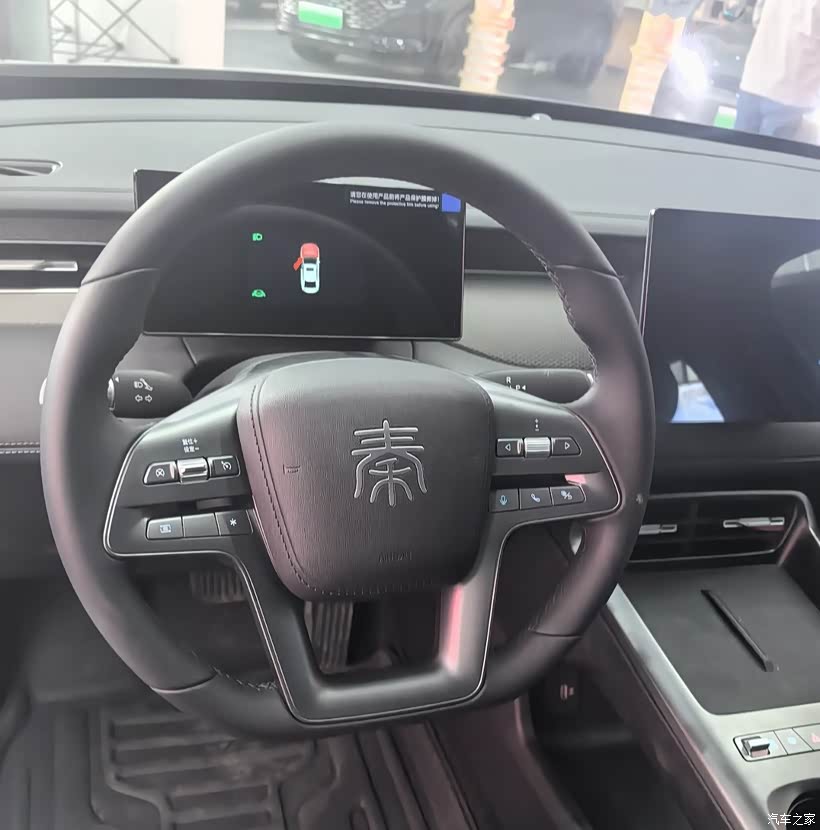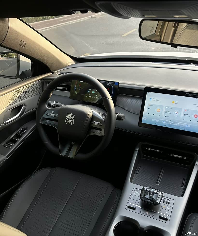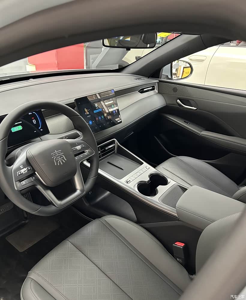 坐进秦PLUS DM-i的座舱,第一感受就是高级感和实用性的完美平衡。内饰大面积采用软质包覆,细腻的皮革与精致的压纹工艺搭配,营造出远超同级的豪华氛围。悬浮式中控屏与全液晶仪表盘的组合,不仅科技感拉满,操作也丝滑流畅,日常导航、娱乐都能轻松搞定。方向盘上的“秦”字标识辨识度十足,多功能按键布局清晰,盲操作也毫无压力。