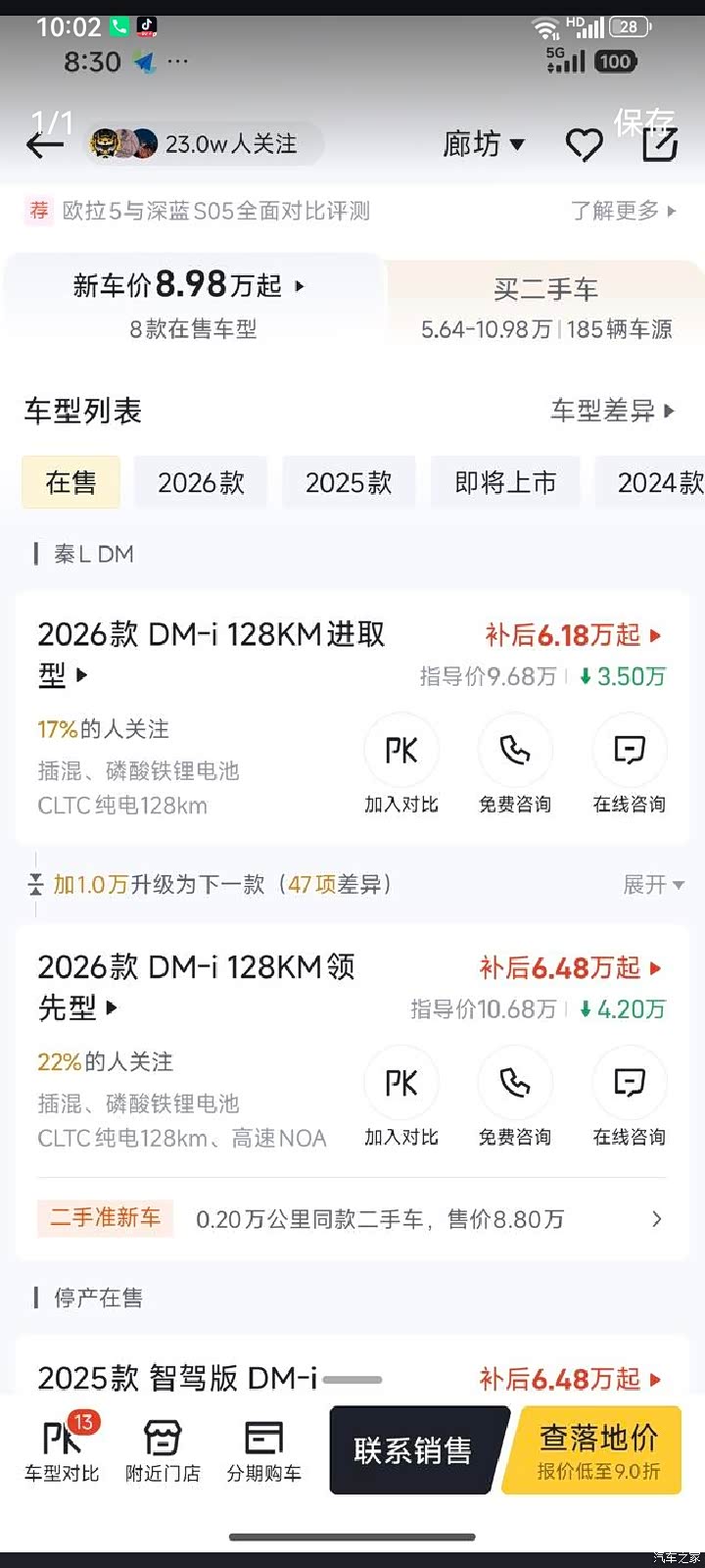 最近琢磨着换台家用车,刷到26款秦PLUS DM-i上市的消息,7.98万起的售价还带着128km纯电续航,8.98售价210km续航,我二话不说就扎进了4S店,今天就以一个普通消费者的视角,跟大家唠唠这款车到底值不值得冲。