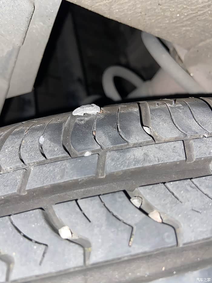 胎压监测1.9 那大差不差是戳钉了,就开始寻找了,天黑才开始以为是个大石头,没掰的动,再一看好家伙 这么大个钉。摸着天黑去轮胎店,轮胎店说在胎壁上,要用蘑菇钉,蘑菇钉60大洋,拆下来以后说补不了会漏气,钉子斜着进的,得换轮胎,轮胎没有现货。