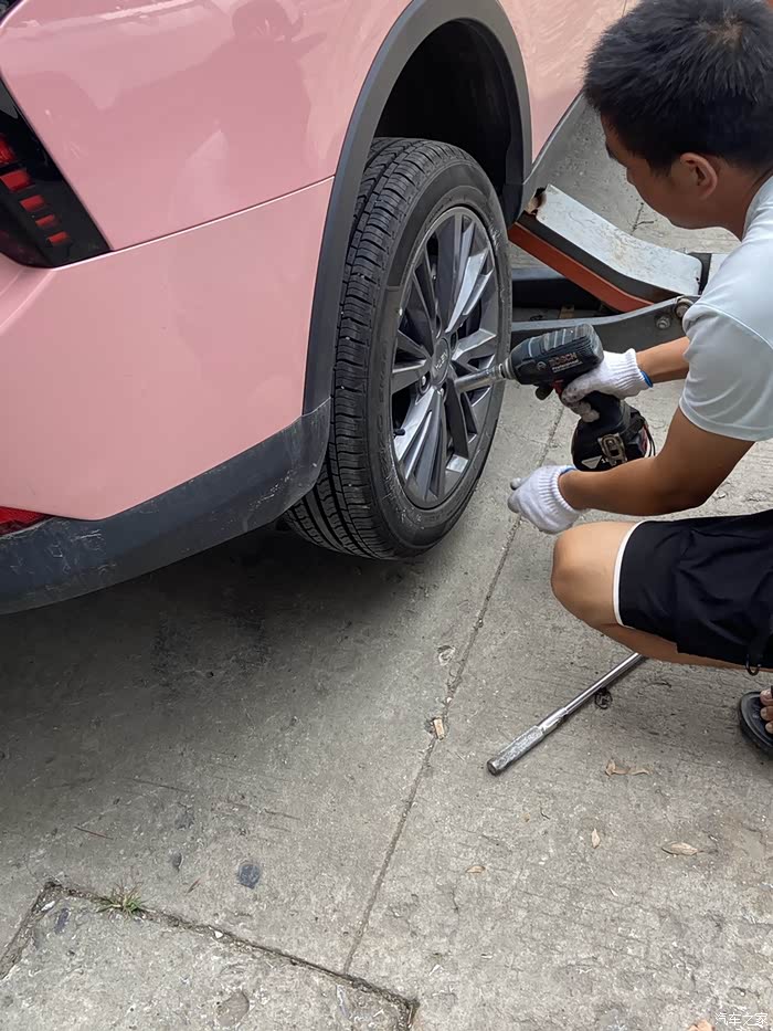 Hey,朋友们。我是桃子。在这金桂飘香的季节里,没想到扎了钉,竟要换轮胎。新手女司机这才开始了解哪吒的轮胎型号。