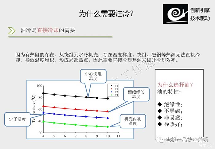 液冷散热方式是通过冷却液流过电机外壳,带走热量,而电机工作时最高温度在电机中心的转子跟线圈,温度传递到外壳存在温度梯度,有测试外壳温度是40度时,中心最高温可达到90度,所以液冷的几个缺点 ,第一是连续激烈驾驶下,电机转子很可能会突破110度,这时候为了保护电机不过热,电脑会对动力进行限制,等到温度降下后恢复正常,不光是电机温度,还有电池温度过高也会导致动力限制。 第二就是退磁,虽然是永磁电机,但是永磁是常温下的状态,磁钢最怕的就是高温,所以长期在高温下工作磁钢会出现退磁现象,而且这是不可逆的,表现就是可能公里数高了后会出现动力下降,8S的加速可能会变成9S 10S这样。而且这种情况并不影响正常驾驶,所以就算有终生质保,厂家肯定也不会给你更换,一般只有电机烧了或者异响这种严重的才可能给你更换。 第三就是铜的温度每升1℃高电阻增加约0.393%,温差30度大概就是11%,所以温度越高同样的输出功率下,电耗越高,续航越短。