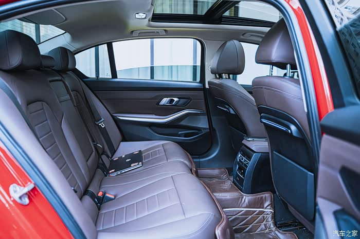 后排腿部空间已经是加长车型的拿手好戏,不过因为3系的后驱配置,中间的隆起是不可避免,但是好在座椅舒适度到位,坐4个人的情况下还是非常惬意。