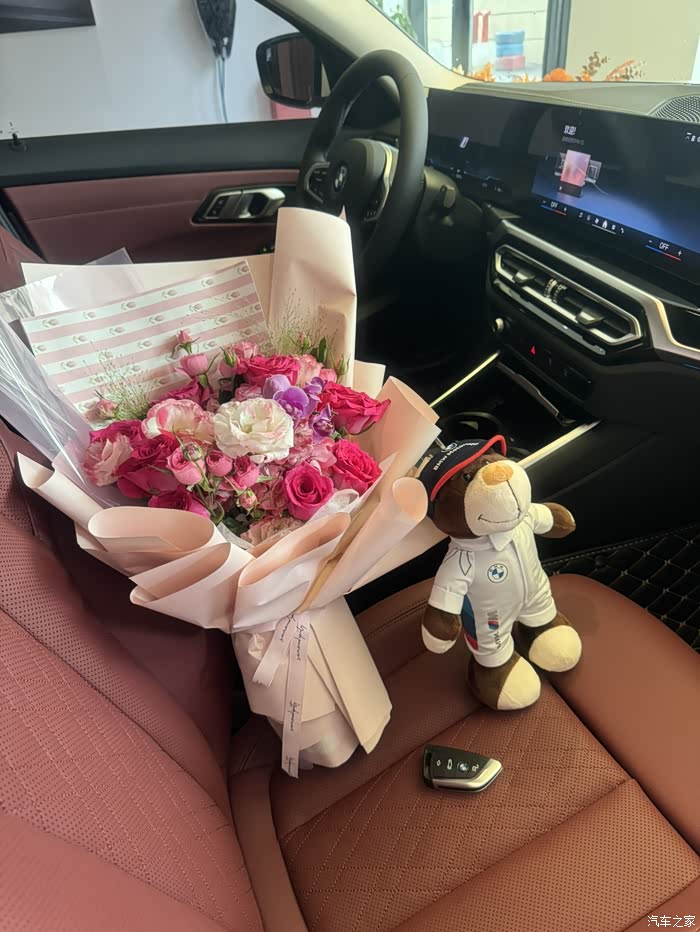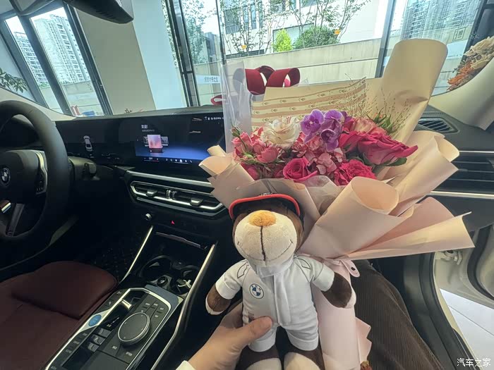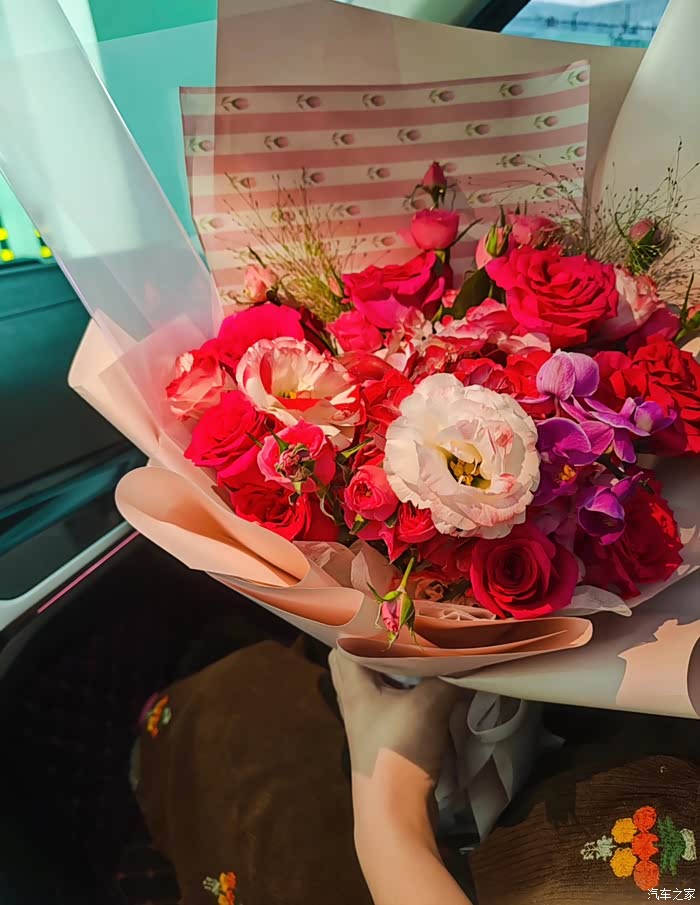 提车当天送了一束鲜花,里面还有一个大苹果,寓意平平安安,挺好的。