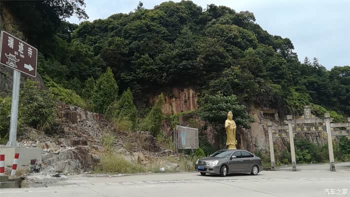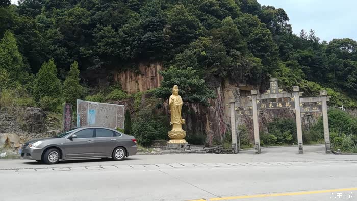 轩逸在观音菩萨莲座下留影,祈求佛祖保佑