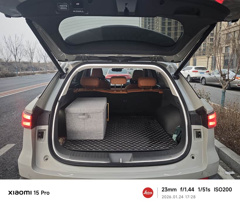 这半年下来,个人感觉最依赖360,因为这是第一辆车,而且还是个中型SUV,心里真的没底,没有360,都不敢想在市区以后怎么停车。还有就是远程控制,这个功能太实用了,每天早上都预约好一键备车,在北方用车大冬天的没有这些真的太受罪了,每天下电梯上车都是热乎乎,这感觉太爽了。智能语音也还行,解放双手,做什么操作喊一声你好哈弗就行,太方便了。出去露营,还可以外放电,有露营模式,二排还能放倒,弄个充气床垫,去山上看星星,简直完美。
