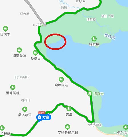 一个是途中标记的小红圈这里,环湖西路走着走着可以在地图看到有小岔路,沿着岔路开下去,有个草地,在青海湖边,还有点像是小悬崖的地方,高度不高,但是景色不错,关键是没有游客。