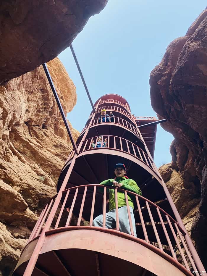 下了骆驼,走着走着就需要往上爬了,多数是钢结构的楼梯。很多游记都说到垂直云梯,我是很想一试的,可是我们去的时候没开放,加上带着娃,就算了。