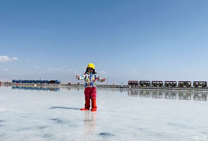 在湖中央拍拍照,叮当玩玩盐,大概20分钟,张森和老赵原路步行返回,我带着叮当坐小火车。