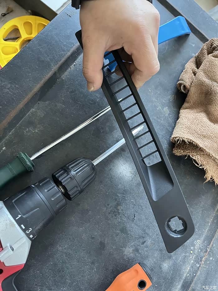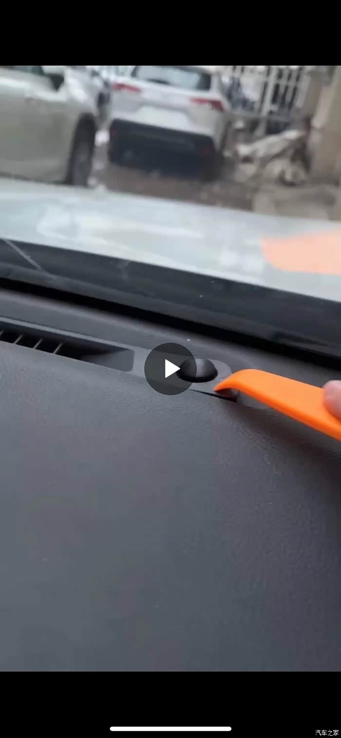 第三步,拿盖板撬开风挡下面的这个塑料板,把里面的线路拔下来。