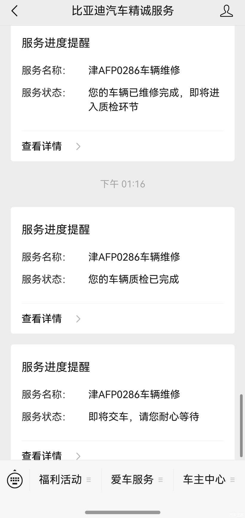 感谢比亚迪精诚服务,就这服务体验感,我打100分!