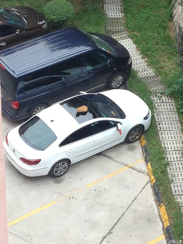 猫咪也喜欢我们家的车,第一次停到楼下,在六层拍的,不是很清晰