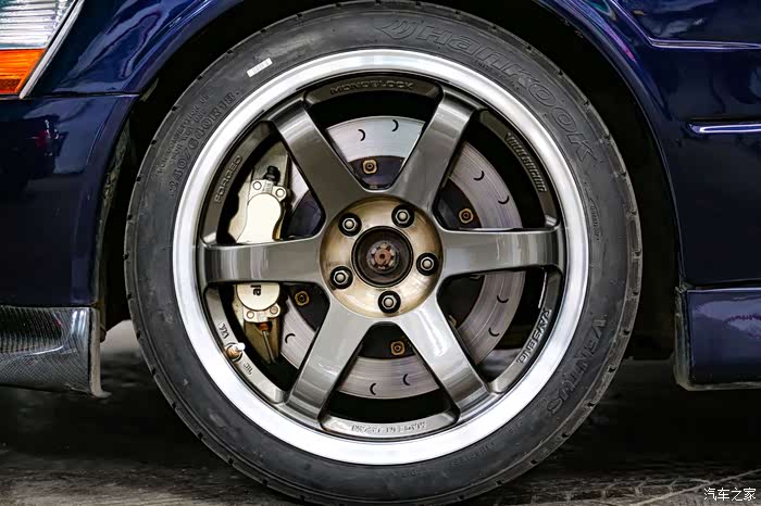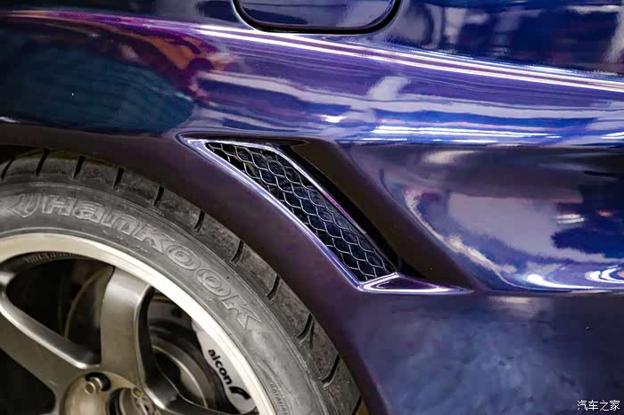 本着街车兼部分赛用风格的改装路线,侧面改装了VOLTEX的宽体部件,加宽程度并不夸张,但是带来了实际的翼子板散热孔,高速状态时对轮胎起到散热作用