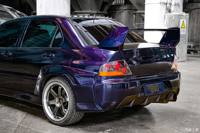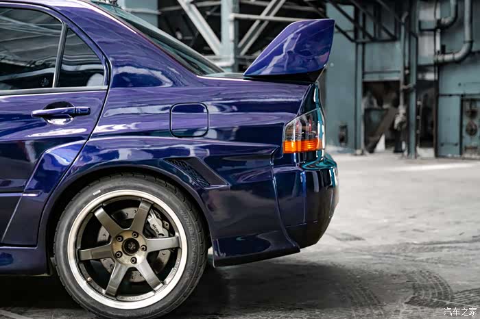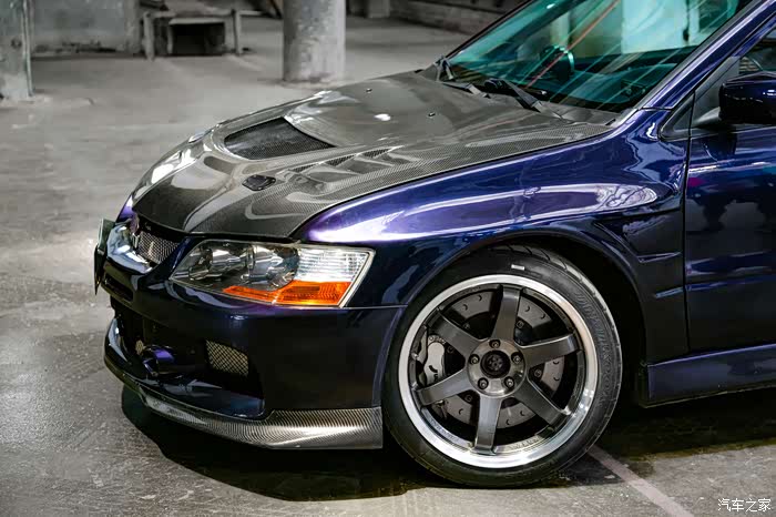 18寸宽240的干胎包裹着TE37v轮毂,TE37在日系改装车中过于常见,但是能像这台Evo9这样与车身颜色协调后还能衬托质感的确实少见