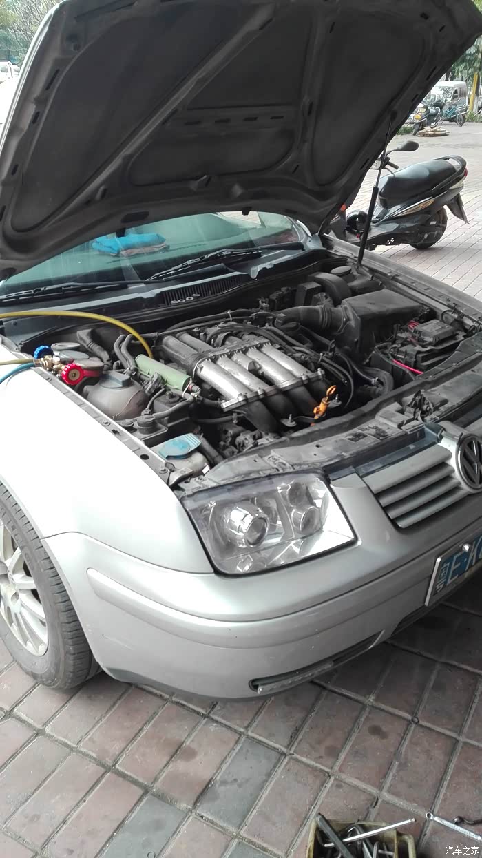 老宝一年前因开空调只有风,没凉感!那会天气炎热,急着用车,也没来得急在论坛问诊!就在朋友的同学那修理了,换了新压缩机(出于对朋友的信任,他介绍的同学我也信任了),他同学开的小修车店,说压缩机不行了,要换!还说能换到原装新压缩机,当时放下车就去忙了,修车内容:新压缩机,膨胀阀和干燥瓶,修好后说优惠幅度大,熟人只收2000大洋。用车后,发现开空调有嗡嗡声,回去返修,说泵里的油加多了,再修,感觉修好了,后来跑高速发现突然不凉了,再回去问说是膨胀阀赌了,包换新的,又折腾好,再继续高速,发现“跑着跑着一个小时就不凉了,出风口感觉快没风出来了,但出风口有凉意,但无风感!停车歇会又恢复正常”,再返修!!给加装个“温控开关”!跟泵连接,据说:“肯定没问题了,达到一定温度会自动断开电磁阀的什么玩意******”,结果后来,问题还是存在,跑短途没问题,但跑长途绝对要你强制休息,不然你就准备蒸会桑拿!!