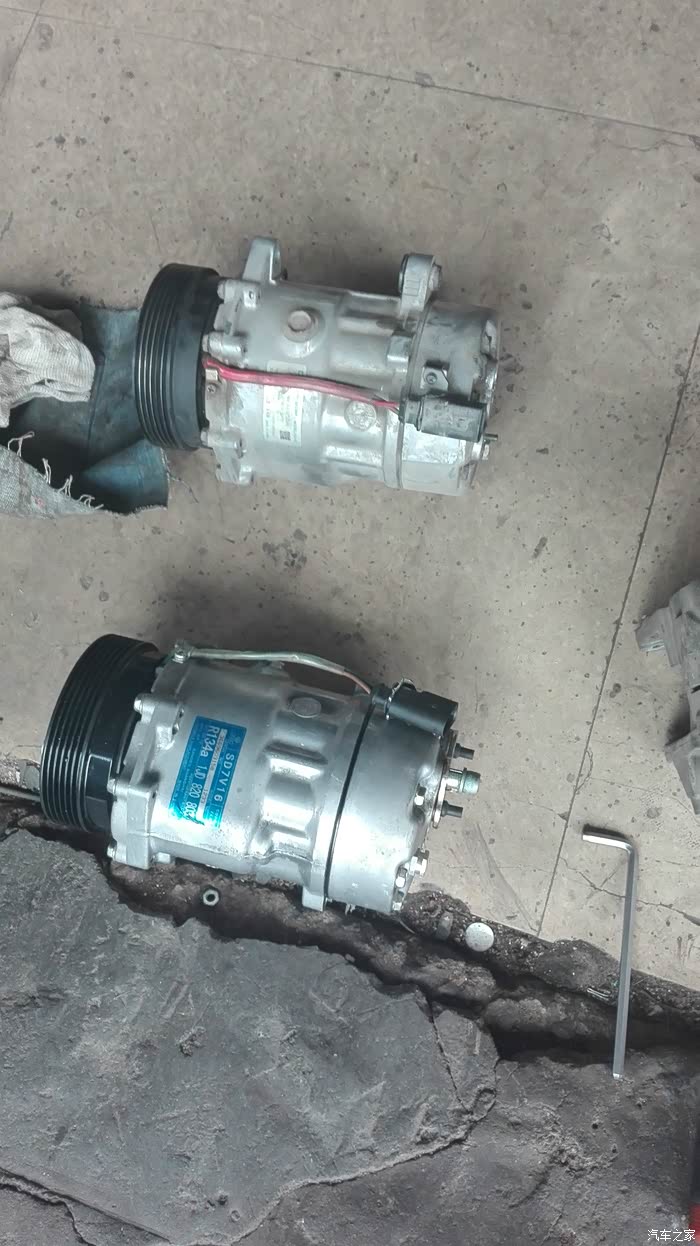 算了,还是去专修空调的店看看,老板说,泵是副厂的,老宝的是三电原装的,相当于“变频空调”,本身就带了温控的,就算副厂泵加温控也很难达到效果,顿时觉悟了!!!感觉是现在是“熟人不熟不吃啊”,比欧洲黑店波尔图还黑,就下决心今年天气热前把空调搞好,经多方对比,刚好去广州,就跟朋友去买了个拆车原装压缩机,和两瓶冷媒,回来安装!希望问题能解决..........