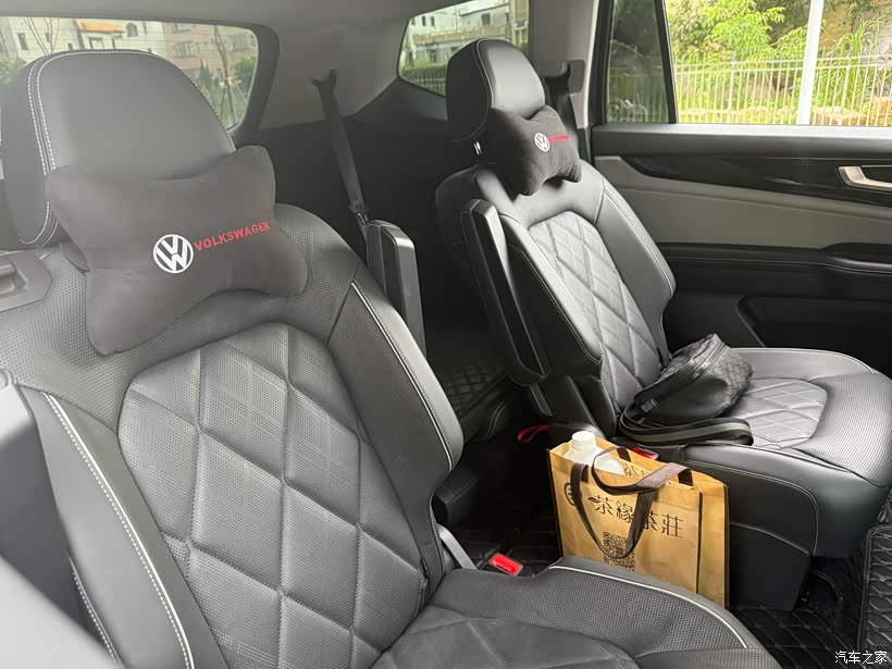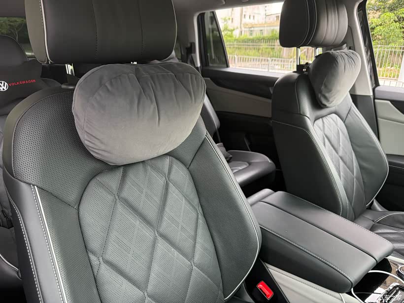 * 乘坐体验:我爸身高172cm,属于中等身材,坐进第三排后挺直腰背,腿部距离第二排座椅仍有半拳余量,膝盖不会顶到前排靠背,头部也不会有压抑感,即便连续乘坐两小时高速,下车后也不会觉得憋屈。满座6人时,2+2+2的独立布局让每个人都能拥有专属空间,不会出现“挤在一起”的尴尬——前排主副驾舒展自在,第二排长辈能调整座椅靠背放松,第三排的孩子或年轻人也有足够活动空间,互不干扰。上次带朋友一家同行,朋友坐完第三排后忍不住感慨:“你这六座途昂也太实用了,我家七座车第三排只能应急,成年人坐久了腰酸背痛,你这完全能当常规座位用!”