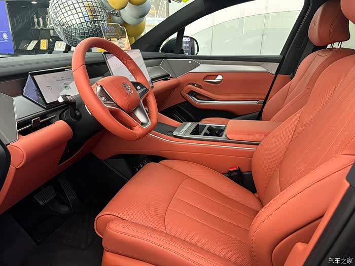 ●内饰风格:标配橙色内饰活力温馨;棕色/白色可选版本,分别展现沉稳优雅与清新简约格调。中控台采用“庑殿顶”造型,搭配竹木饰板,融合文化底蕴与科技感。