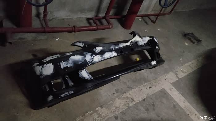 第二天下班就赶着回来打腻子.喷漆.话说无脸中网应该也挺帅.但我要打造原味的欧版