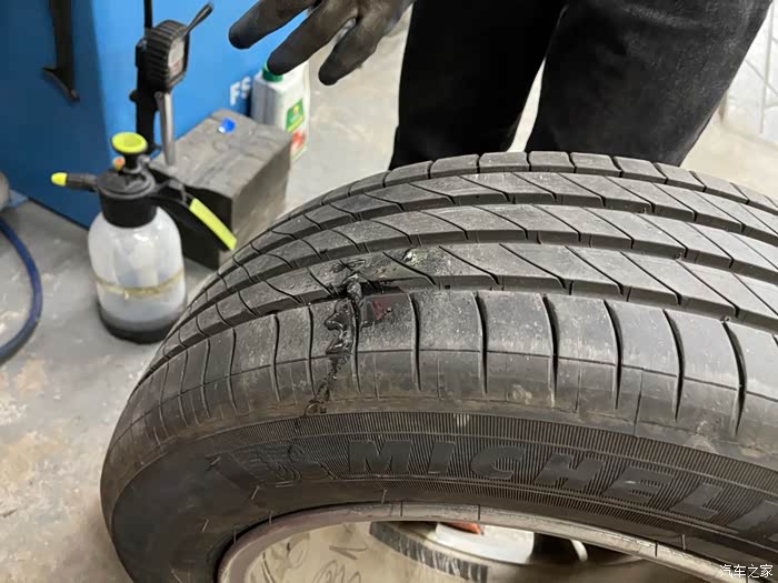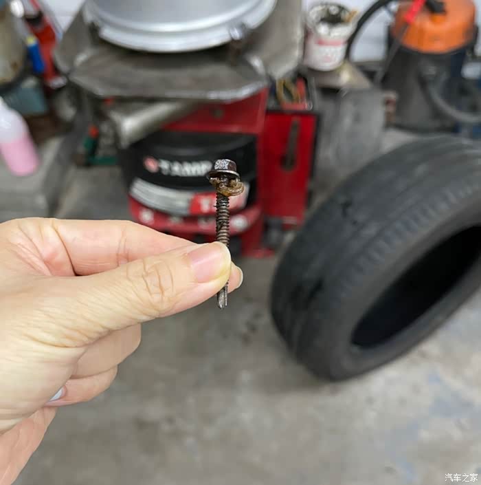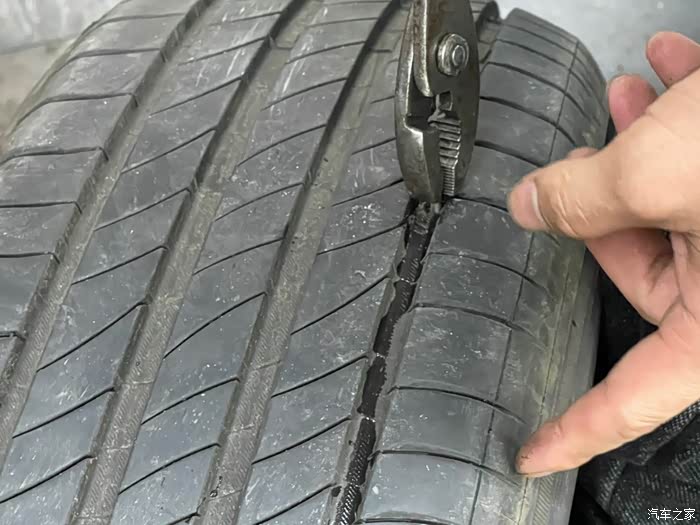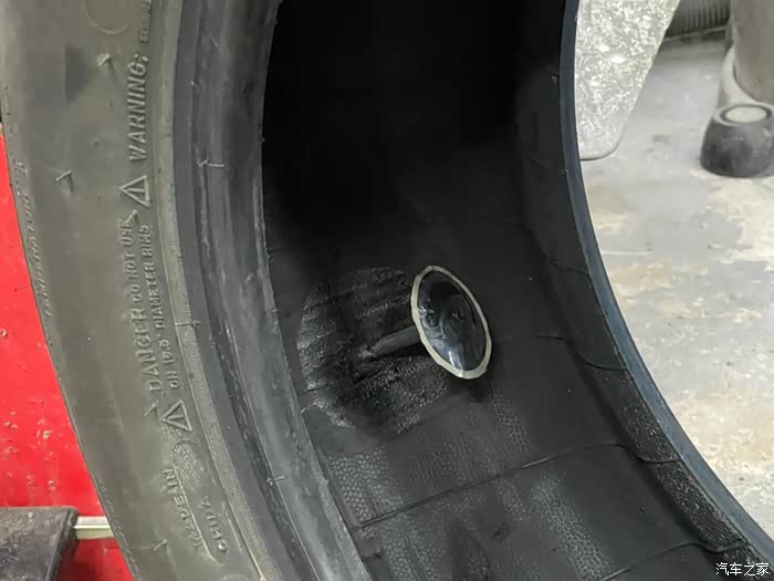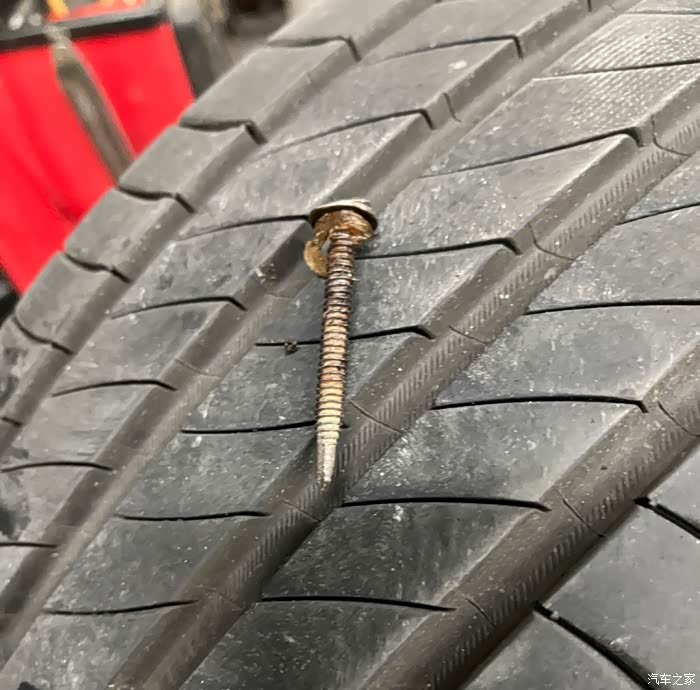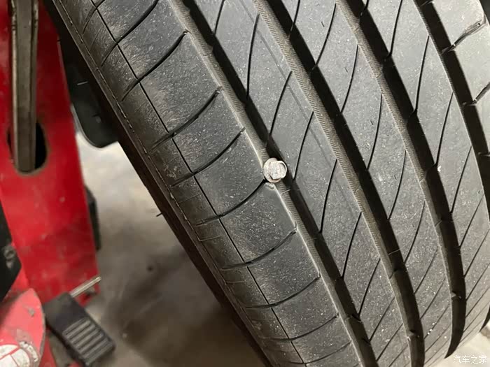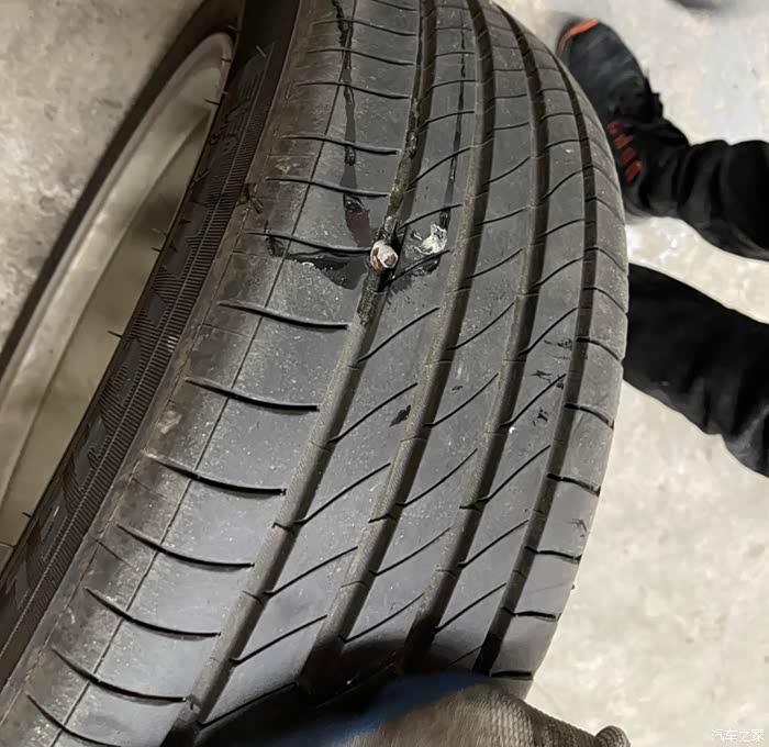 为什么是第一次扎钉,还那么深,直接扎穿了!周日自驾车雨中漫步南沙港,回来车子停了两天没动,等想开的时候,结果发现右后轮完全没气。天哪,我这是才用了三个月的新胎啊。