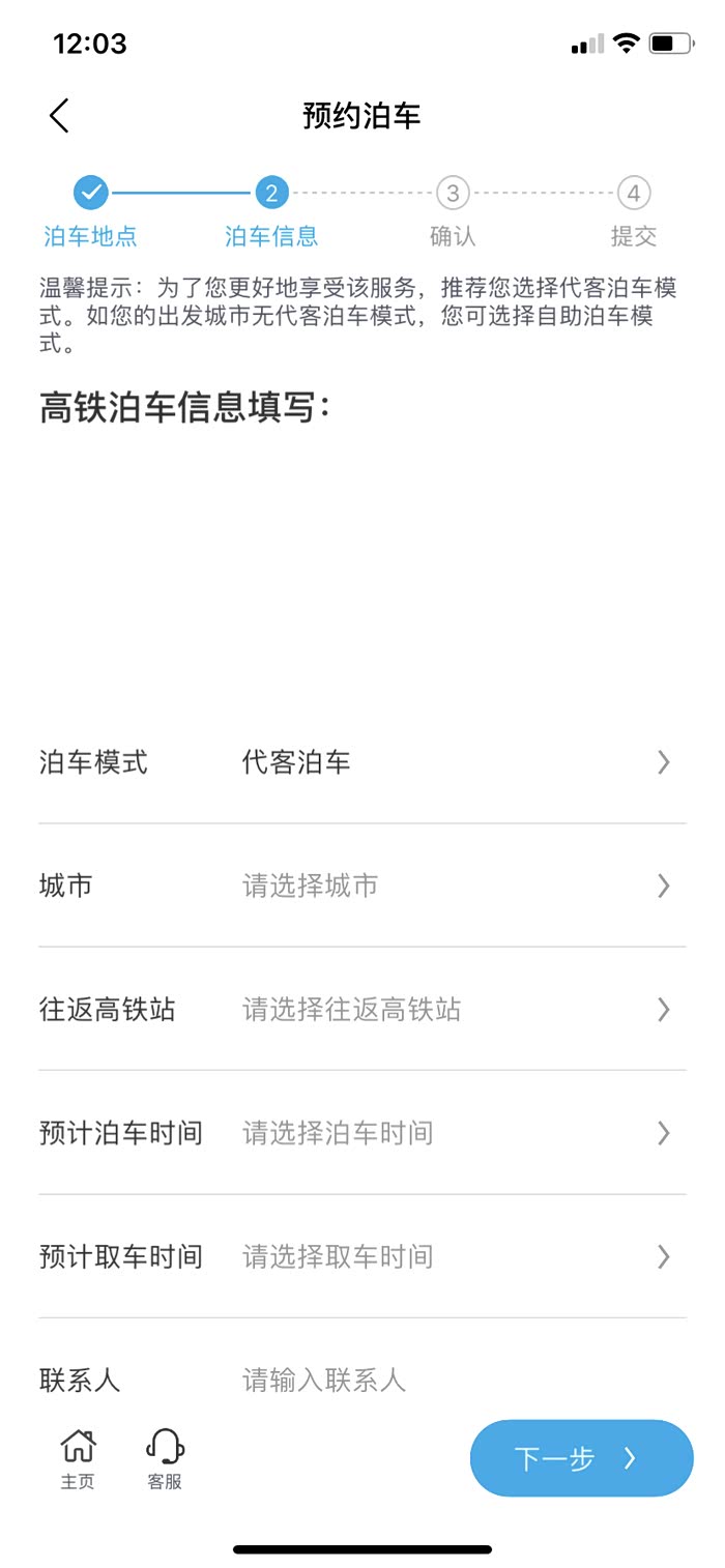 服务里面点击泊车服务,选择你要去的地方(机场,高铁,医院)