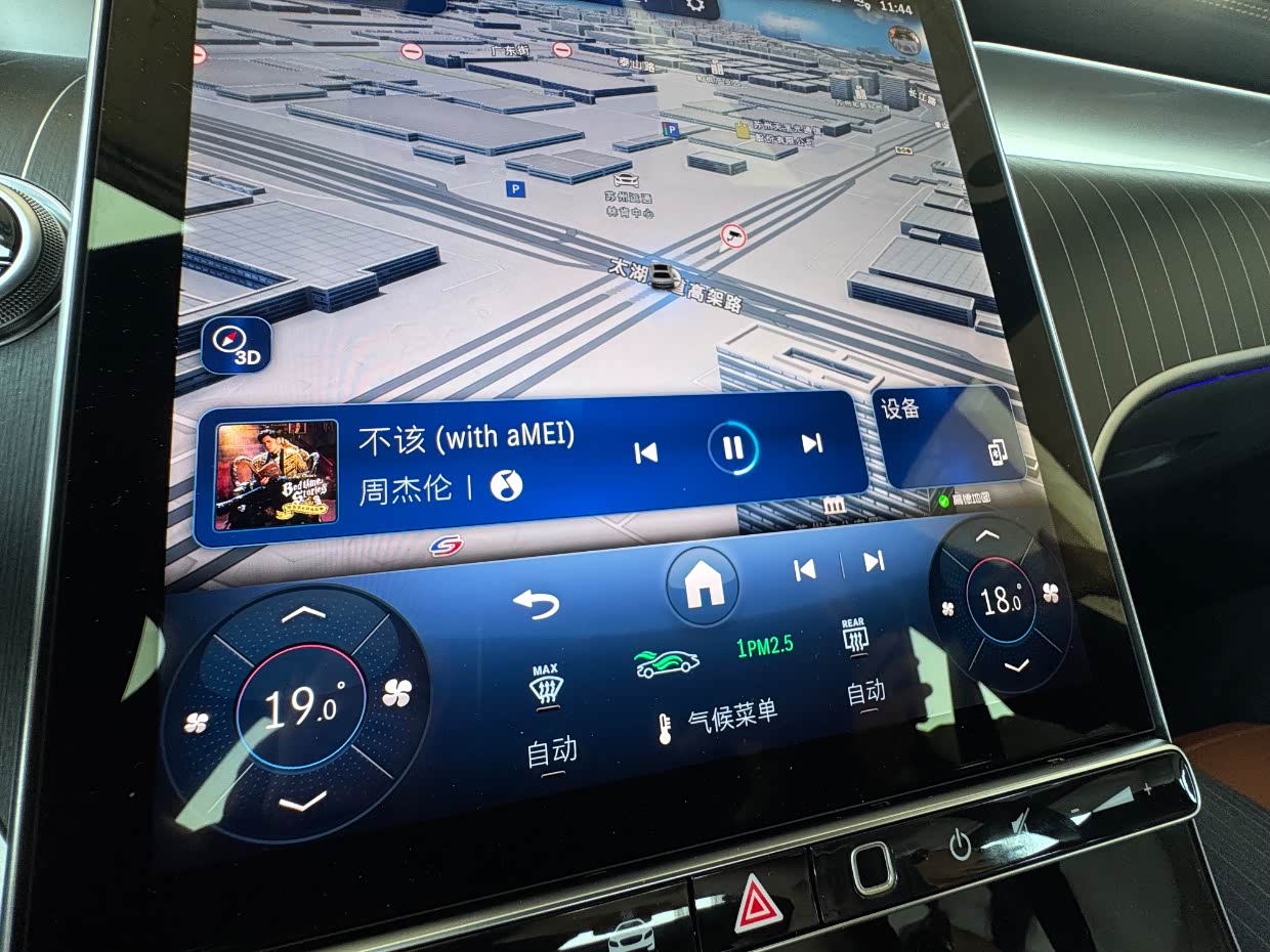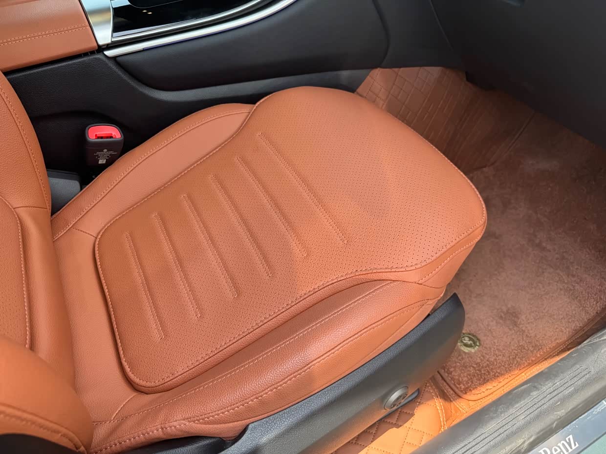内饰是我最喜欢的,整体很有档次尽显豪华,车内用料很扎实,中控台和门板大面积覆盖皮质、木纹饰板和金属装饰件,细节缝线很均匀,质感细腻,方向盘采用真皮包裹,造型别致,握感舒适,空调出风口设计独特,搭配悬浮式12.3英寸全液晶仪表和11.9英寸中控大屏,第二代MBUX智能人机交互系统,支持自然语音控制和手势操作,虽然不是很滑,但有总比没有好,还有就是奔驰的64色氛围灯可随心情调节,夜晚点亮后的效果是真的好。