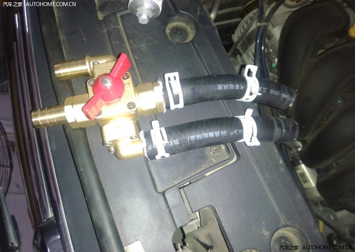 车友方案,水管基本还是远离发动机,而且对阀门起到支撑作用,这个安装,就是少了密封胶步骤。